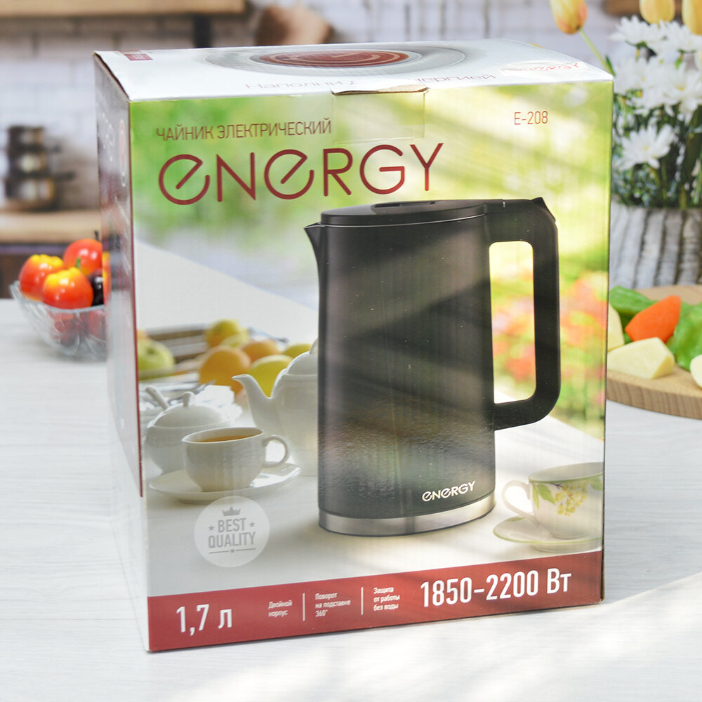 | Дополнительная информация | чайник с двойным корпусом, защита от включения без воды, вращение на 360 градусов, корпус из пластика, внутренняя колба из пищевой нержавеющей стали 304, максимальный объём 1,7 литра, мощность в диапазоне 1850-2200 Вт |