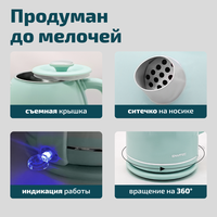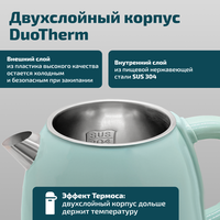 | Особенности | бесшумное закипание, вращение на 360 градусов, двойные стенки, дисплей, заварочный фильтр, индикатор уровня воды, индикация включения, отсек для хранения шнура, сенсорное управление, съемная крышка |