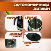 | Особенности | бесшумное закипание, дисплей, индикатор уровня воды, индикация включения |