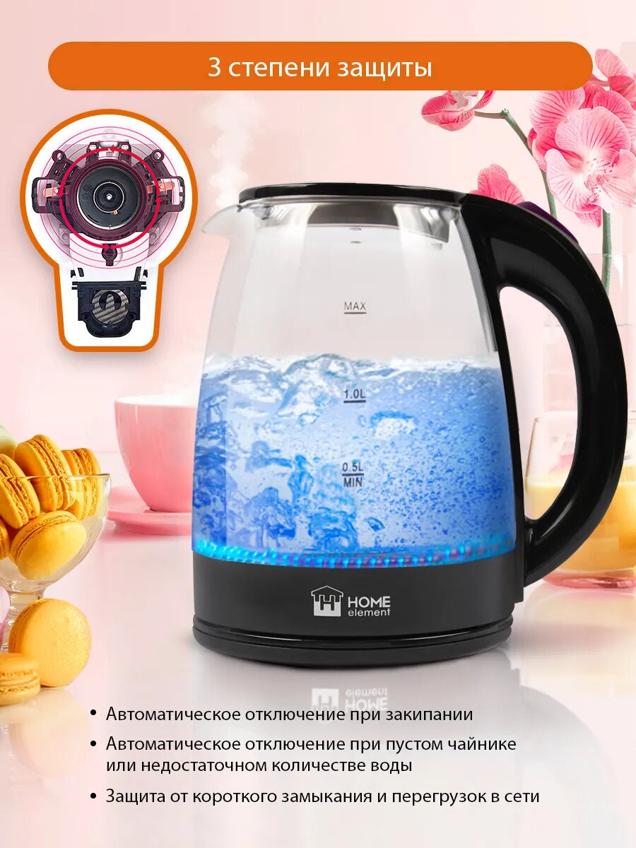 Электрический чайник HOME ELEMENT HE-KT185 графитовый чароит стеклянный, 2л: сравнение цен, характеристики, фото, актуальное наличие и цены.