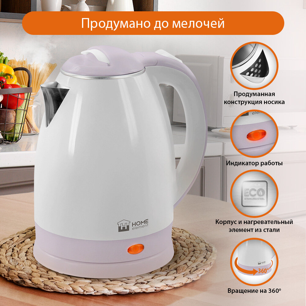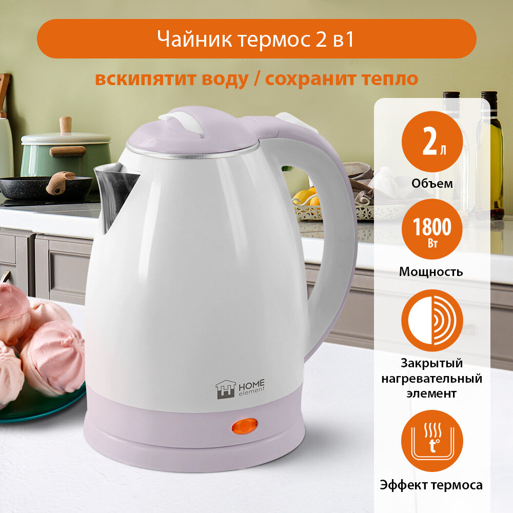 Электрический чайник HOME ELEMENT HE-KT193 белый/лиловый металлический, термос, 2 л: сравнение цен, характеристики, фото, актуальное наличие и цены.