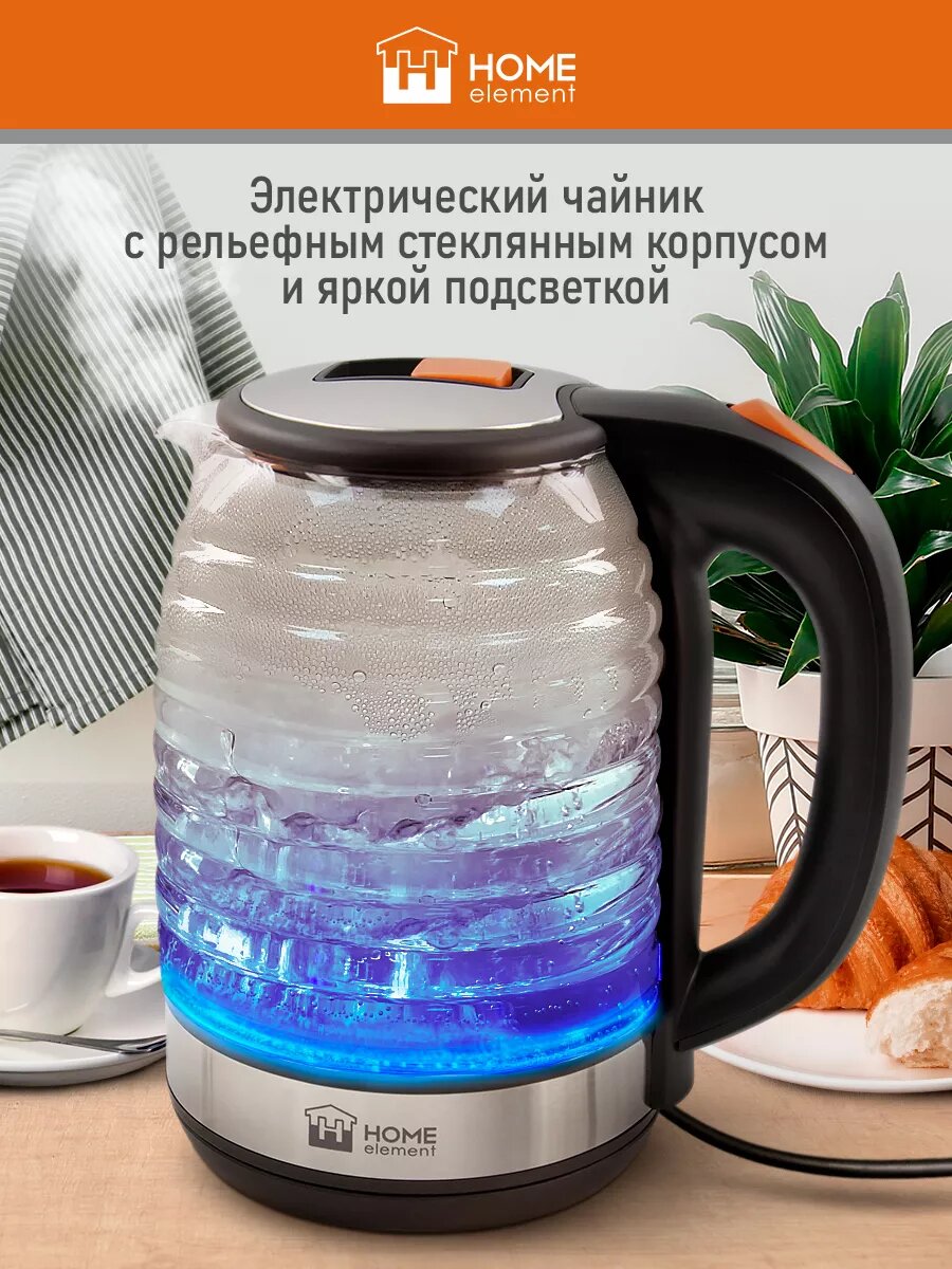 Электрический чайник HOME ELEMENT HE-KT2306 темный янтарь стеклянный, 2л: сравнение цен, характеристики, фото, актуальное наличие и цены.