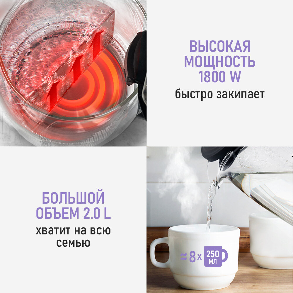 | Безопасность | блокировка включения без воды, отключение при снятии с подставки |