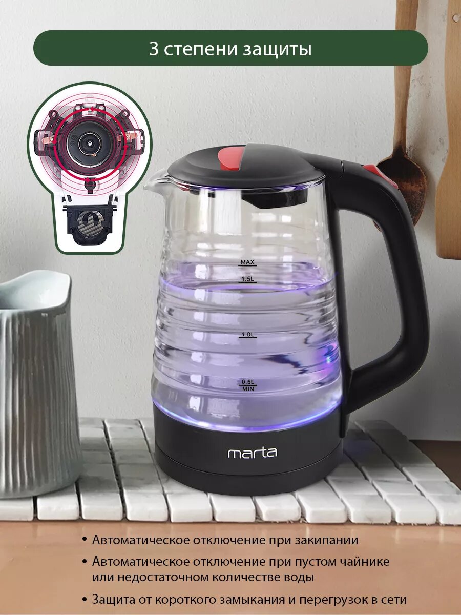 | Безопасность | блокировка включения без воды, блокировка крышки, отключение при снятии с подставки |