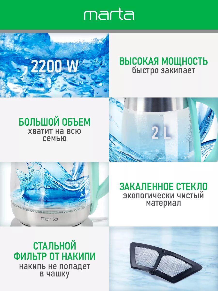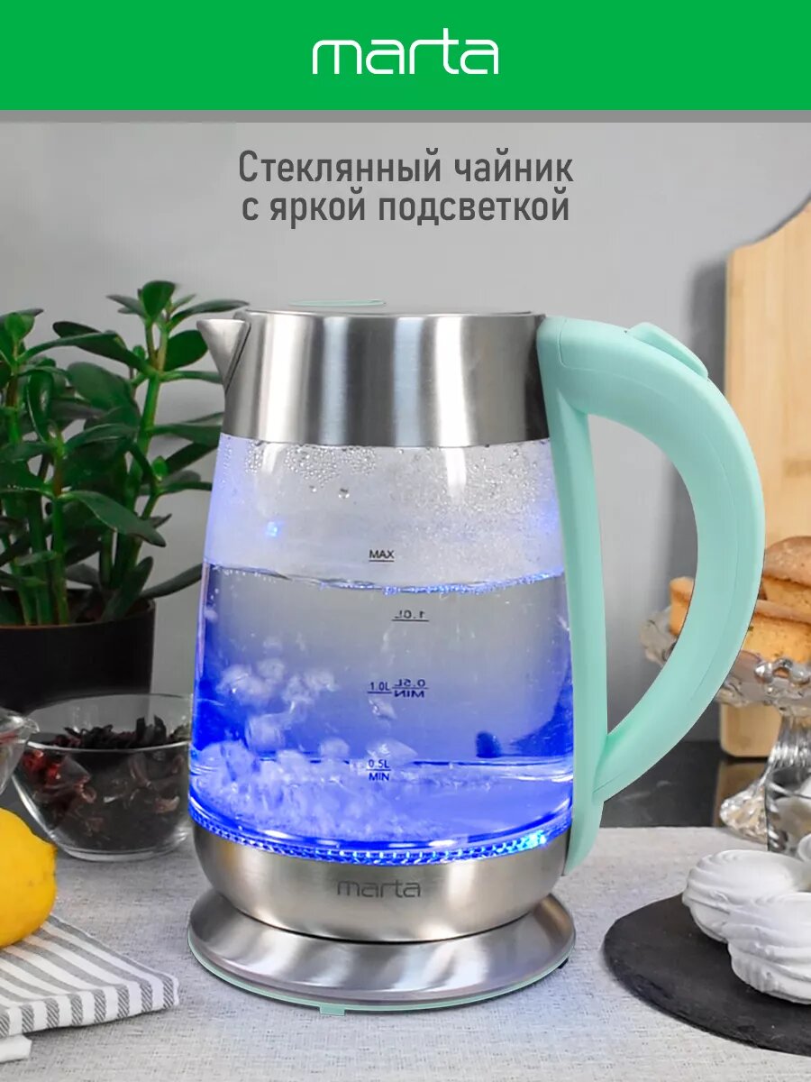 Электрический чайник MARTA MT-4618 светлая яшма стеклянный, с подсветкой 2 л: сравнение цен, характеристики, фото, актуальное наличие и цены.
