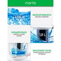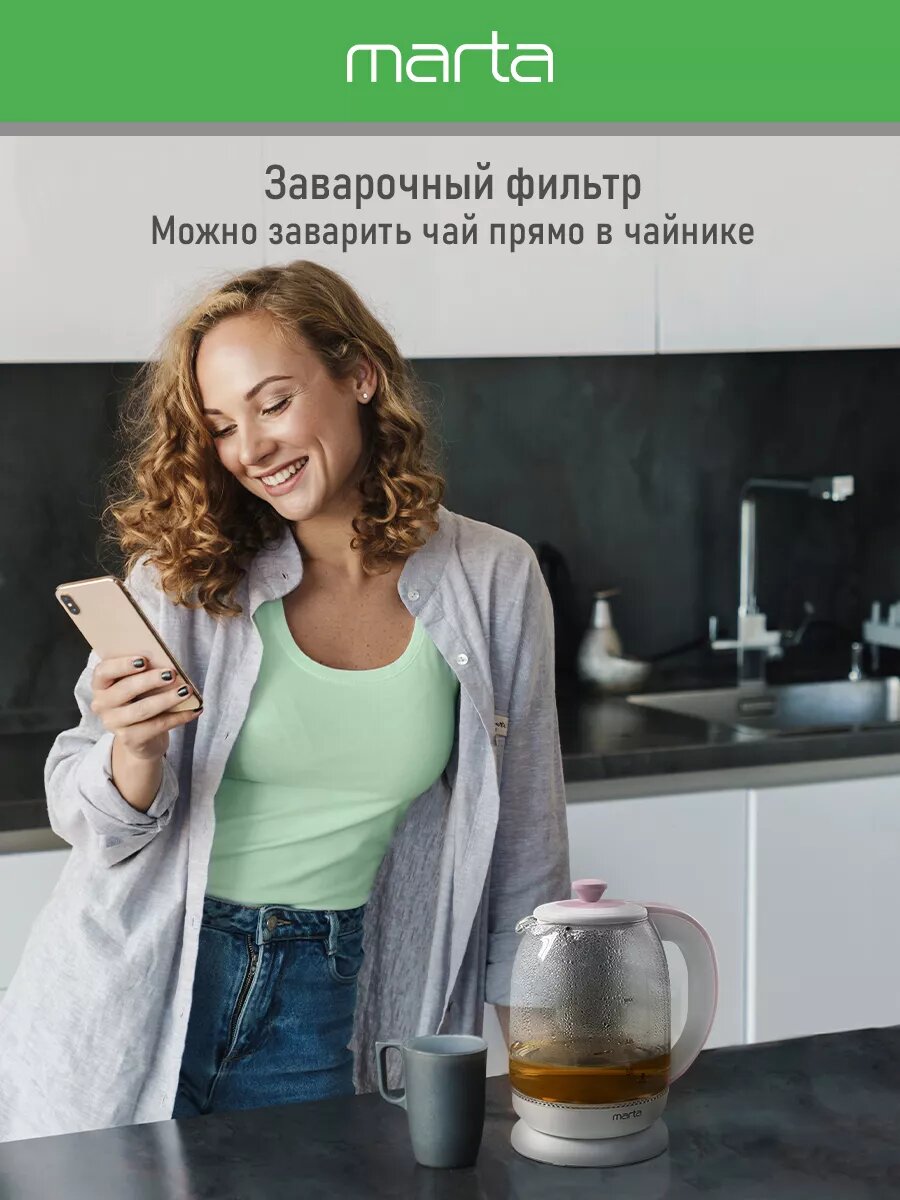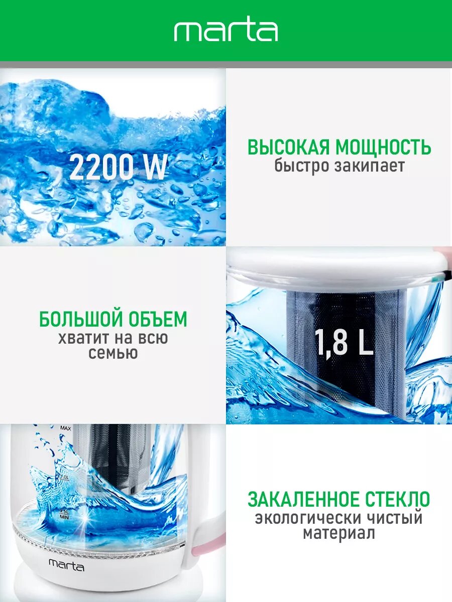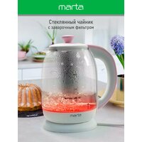 Электрический чайник MARTA MT-4622 белый/розовый стеклянный с терморегулятором 1.8 л: сравнение цен, характеристики, фото, актуальное наличие и цены.