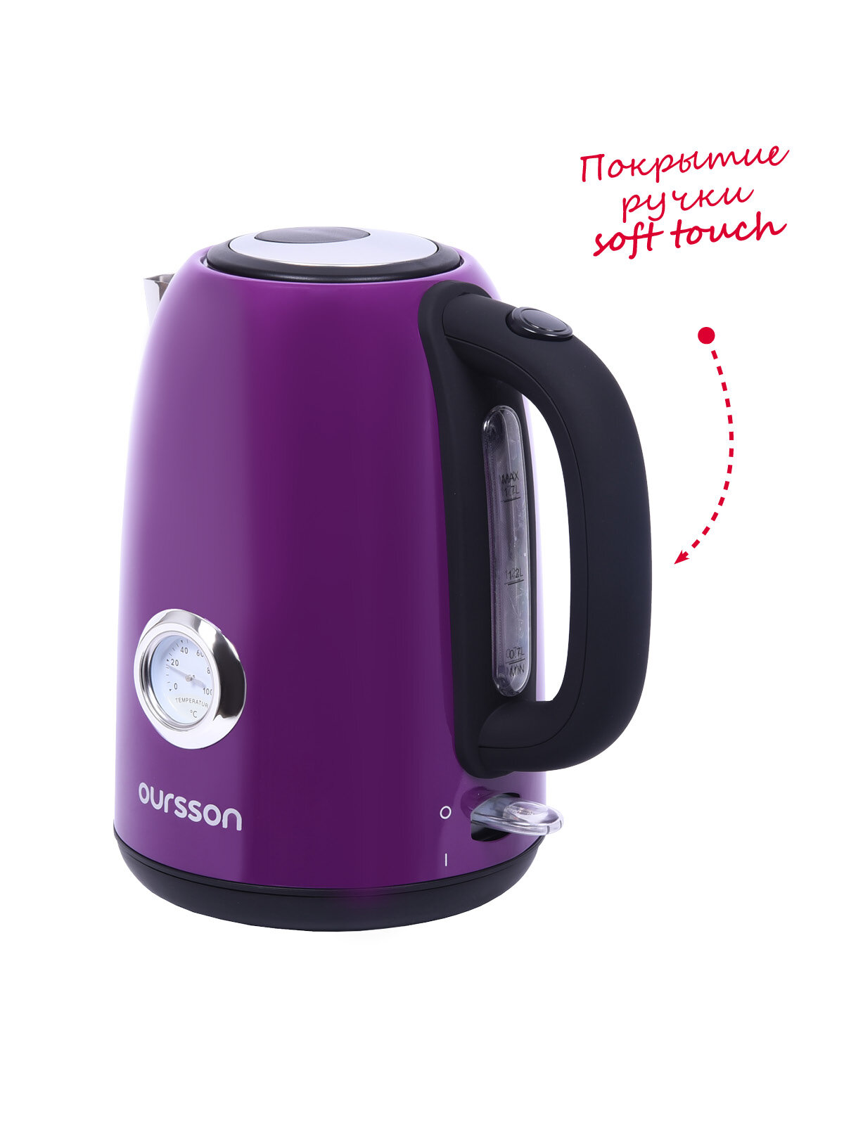 Модель электрического чайника OURSSON EK1752M выполнена из высококачественной нержавеющей стали, объем составляет 1,7 литра, мощность 2150 Вт. Чайник оснащен встроенным термометром: вы можете самостоятельно отследить температуру воды внутри чайника. Контроллер английской фирмы Strix обеспечивает безопасное и долговременное использование чайника. Специальный фильтр не позволит накипи попасть в чашку. Благодаря ручке с мягким покрытием soft touch чайник приятно и безопасно держать в руках, он не выскользнет даже из мокрых рук. Корпус чайника свободно вращается на 360 градусов, что гарантирует удобство в эксплуатации.