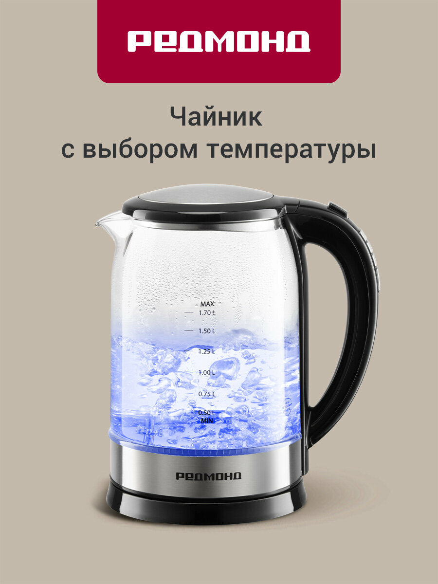 Универсальный стеклянный чайник РЕДМОНД KG257 на 1,7 литра с колбой из термостойкого стекла и элементами из нержавеющей стали легко впишется в кухонный интерьер. А благодаря прочному материалу модель дольше прослужит и сохранит свой первоначальный вид. Чайник идеально подойдет для приготовления любых сортов чая благодаря 6 температурным режимам.