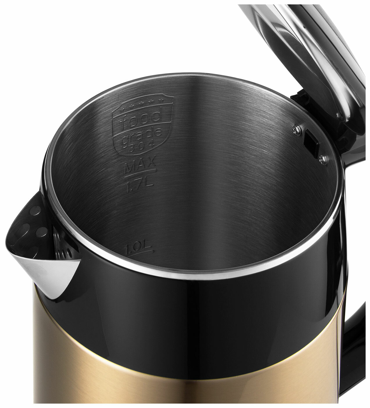 Чайник РЕДМОНД RK-M1582 — современный прибор для кипячения воды в корпусе цвета шампань. Подойдет для любого интерьера и семьи из 5–6 человек. Объем 1,7 л. Удобно набирать и мыть благодаря широкой горловине. Контактная группа STRIX® обеспечит долгий срок службы без поломок и перегрева и позволит вращать чайник на 360°.