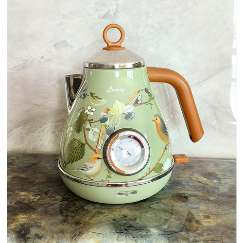 Артикул: Электрический чайник с цветными водяными знаками PS3013Ta, Ретро-термометр-водонагреватель, Электрический чайник мощностью 1850 Вт, Светодиодная подсветка SUS304, Объем 1,7 л, Дизайн с широким носиком, Фильтр для воды, Носик с функцией добавления воды, Высокая безопасность, Аналоговый термометр с циферблатом, Быстрое закипание, Без Бисфенола А, Проводная подставка для хранения, Автоматическое выключение и Защита от сухого приготовления