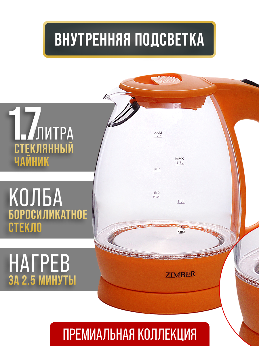 Купить Электрический чайник ZIMBER 11177, с подсветкой, вращение на 360°, 2200 Вт с доставкой по всей России.