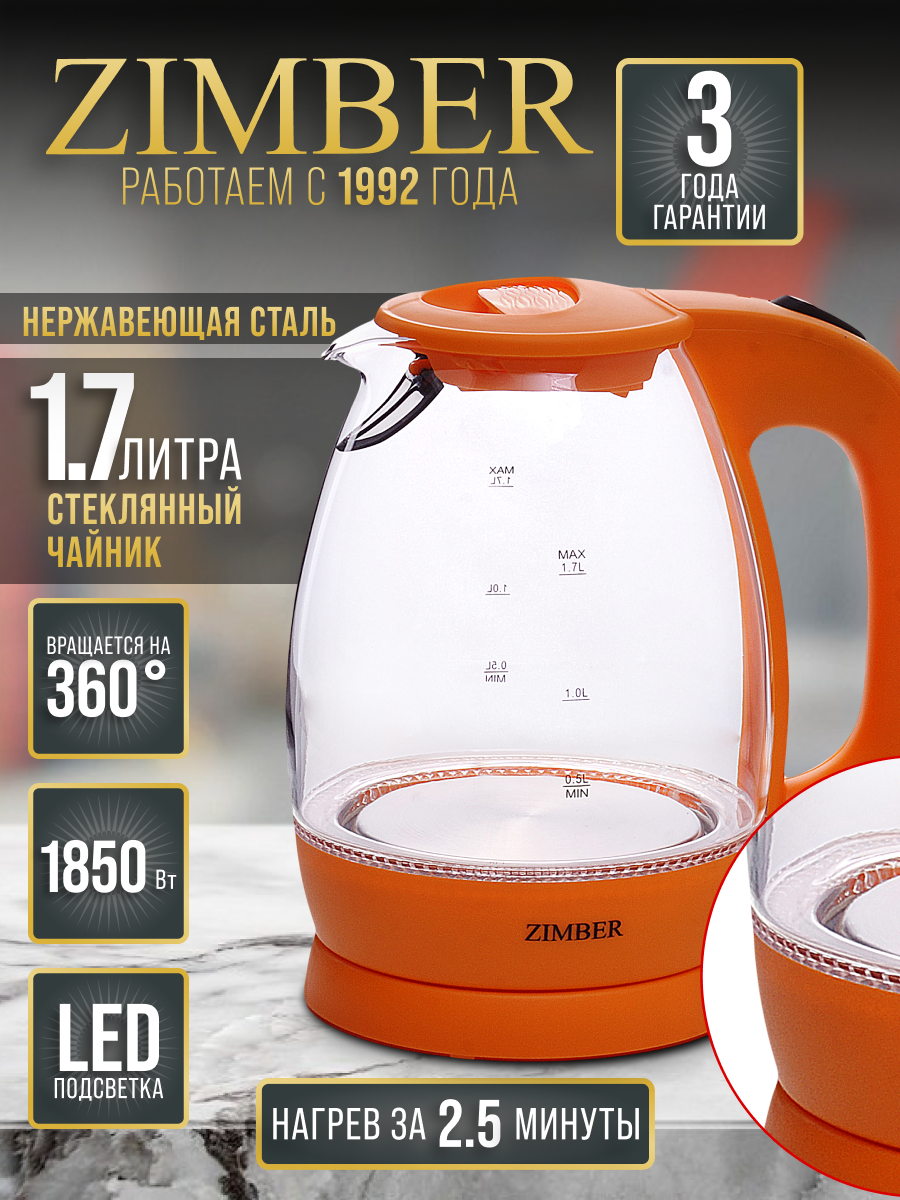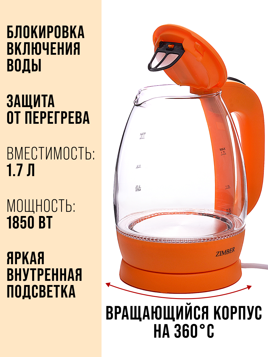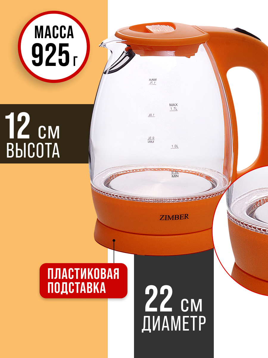 Электрический чайник ZIMBER 11177, с подсветкой, вращение на 360°, 2200 Вт: сравнение цен, характеристики, фото, актуальное наличие и цены.