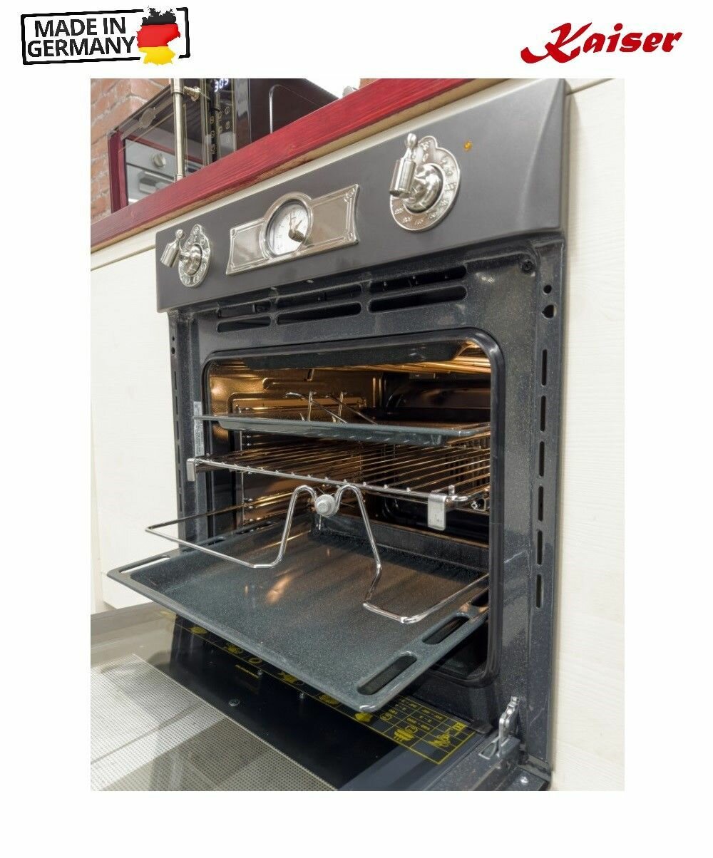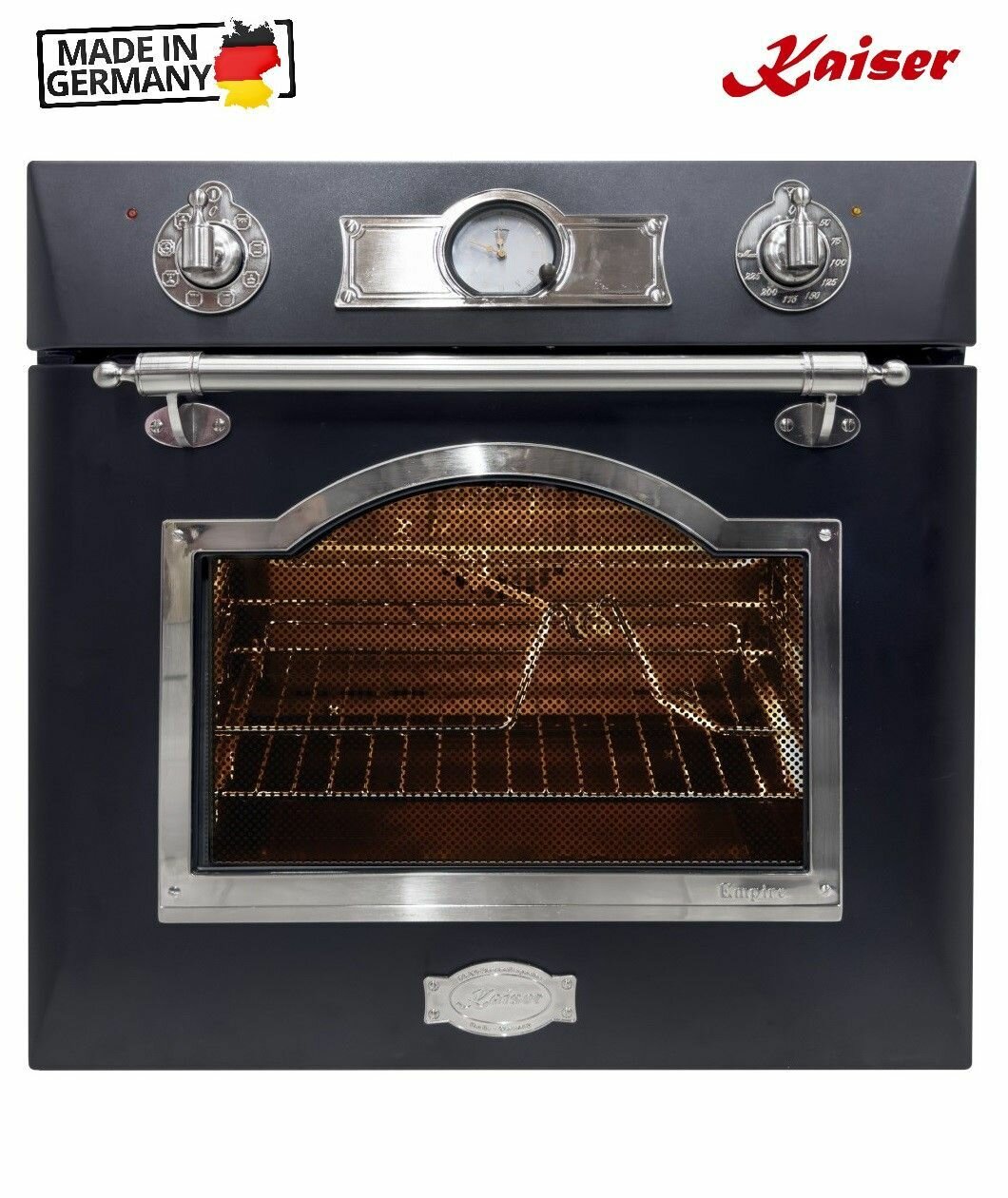 Духовой шкаф 60 см Kaiser Empire EH 6355 EmSil принадлежит коллекции Empire, выполнен в цвете антрацит, фурнитура имеет серебристый окрас. Дизайн, в котором изготовлена — старина. Массивные металлические ручки и другие элементы фурнитуры, выполненные в ретро-стиле, придают изделию изысканный, утонченный и интересный внешний вид. Если привлекательность бытовой техники важна для вас, присмотритесь к этой модели!