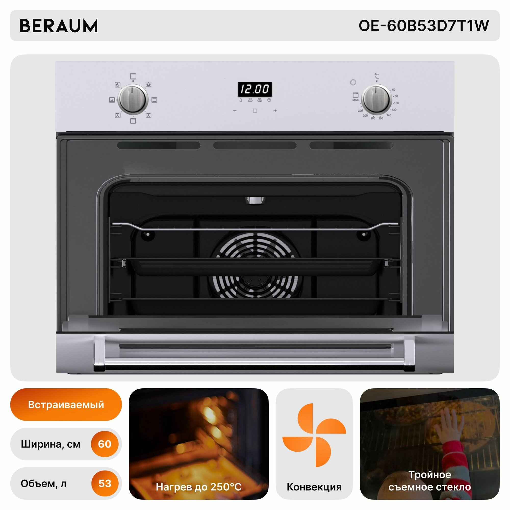 Электрический духовой шкаф Beraum OE-60B53D7T1W c конвекцией и грилем, утапливаемые переключатели, 53 л, 60 см: сравнение цен, характеристики, фото, актуальное наличие и цены.