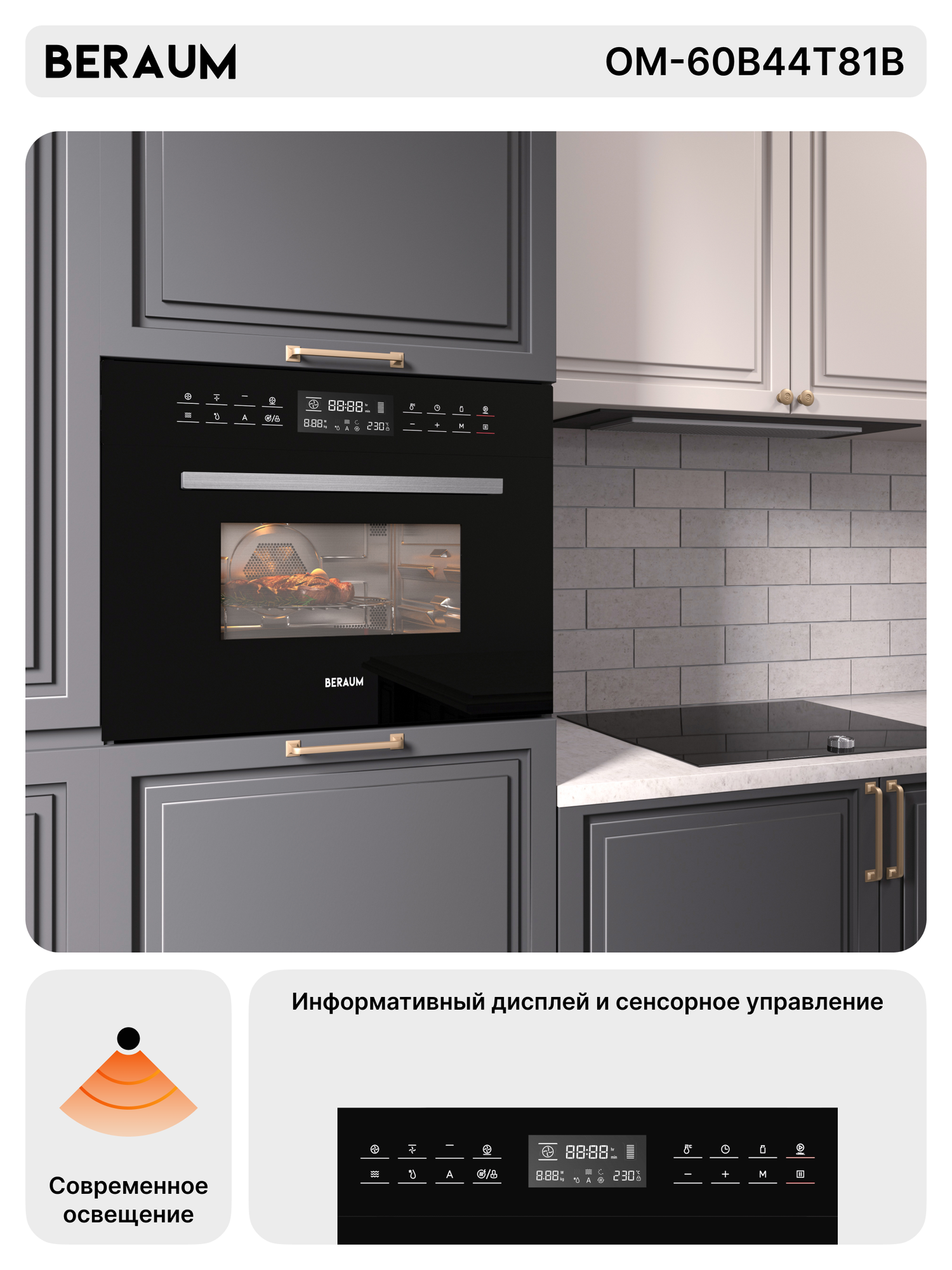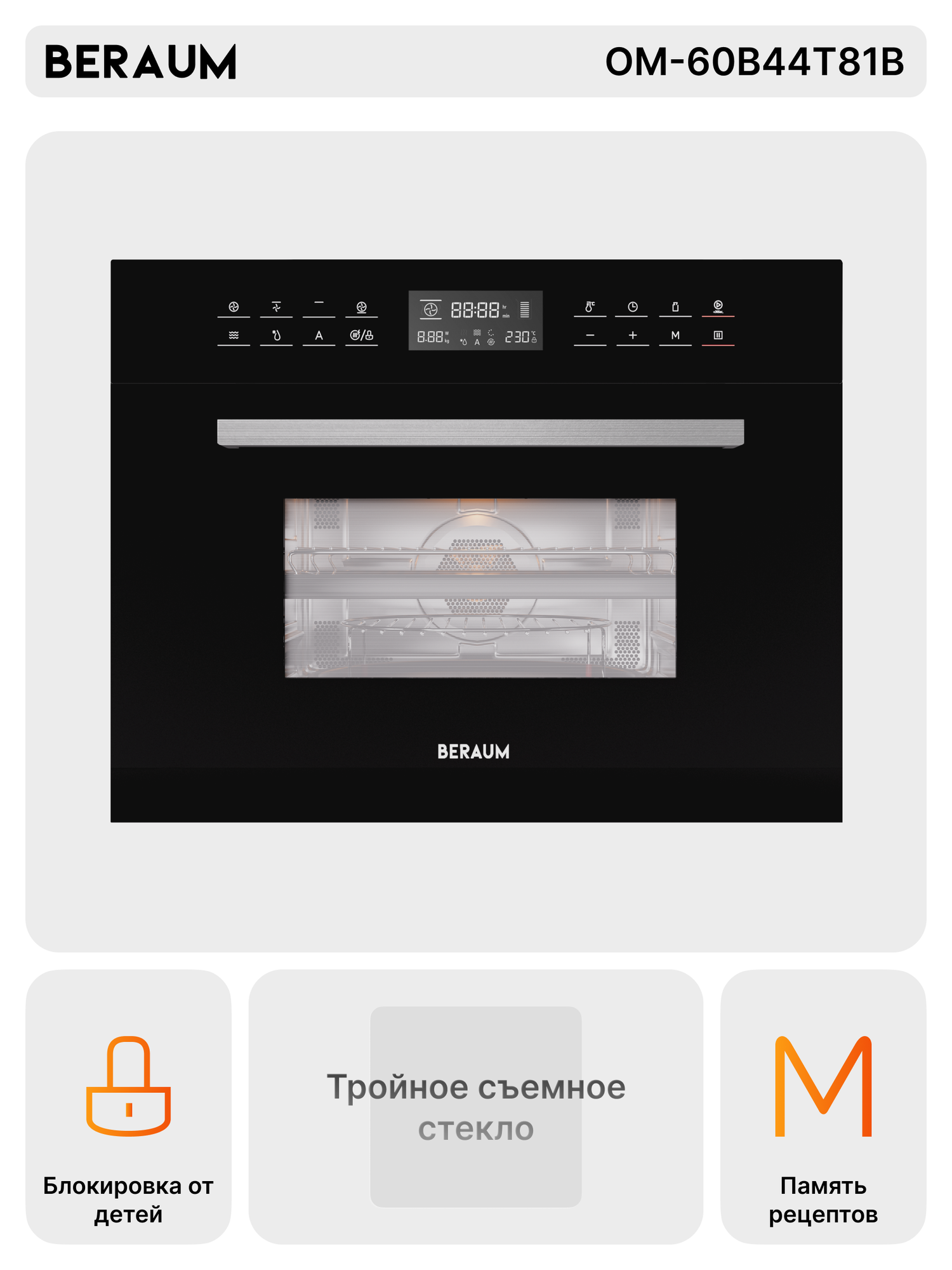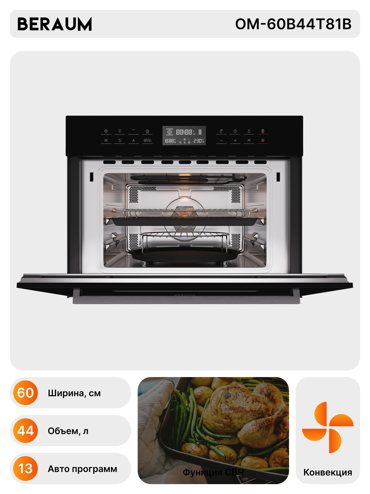 Электрический духовой шкаф Beraum OM-60B44T81B с СВЧ, объем 44 л, поворотный стол и защита от детей, 60 см: сравнение цен, характеристики, фото, актуальное наличие и цены.