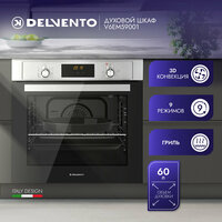 Купить Духовой шкаф электрический встраиваемый 60см серый / 9 режимов (гриль + конвекция) / DELVENTO V6EM59001 / дисплей / таймер 90 мин, часы / двойное стекло LOW-E / хром. решетка и 2 противня: стандартный + круглый / подсветка / гарантия 3 года / с доставкой по всей России.