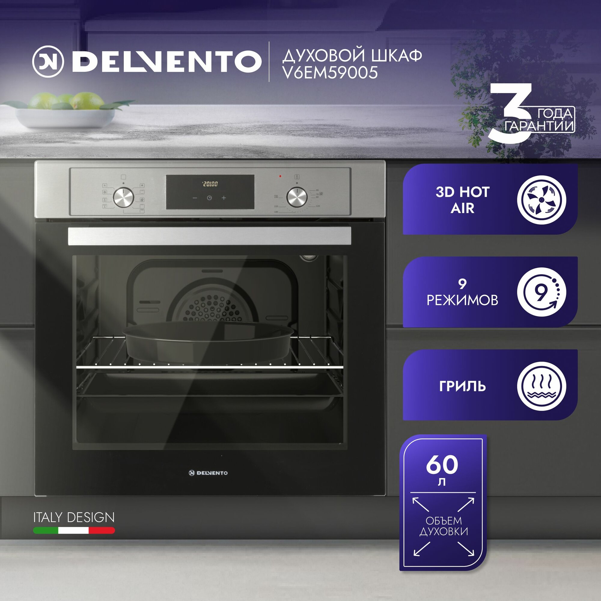 Купить Электрический духовой шкаф Delvento V6EM59005 , Гриль , Конвекция с доставкой по всей России. Электрический духовой шкаф Delvento V6EM59005 , Гриль , Конвекция: сравнение цен, характеристики, фото, актуальное наличие и цены.