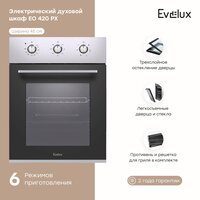 Электрический духовой шкаф Evelux EO 420 PX ширина 45 см, объем 50 л, гриль, конвекция, 6 режимов, нержавеющая сталь: сравнение цен, характеристики, фото, актуальное наличие и цены.