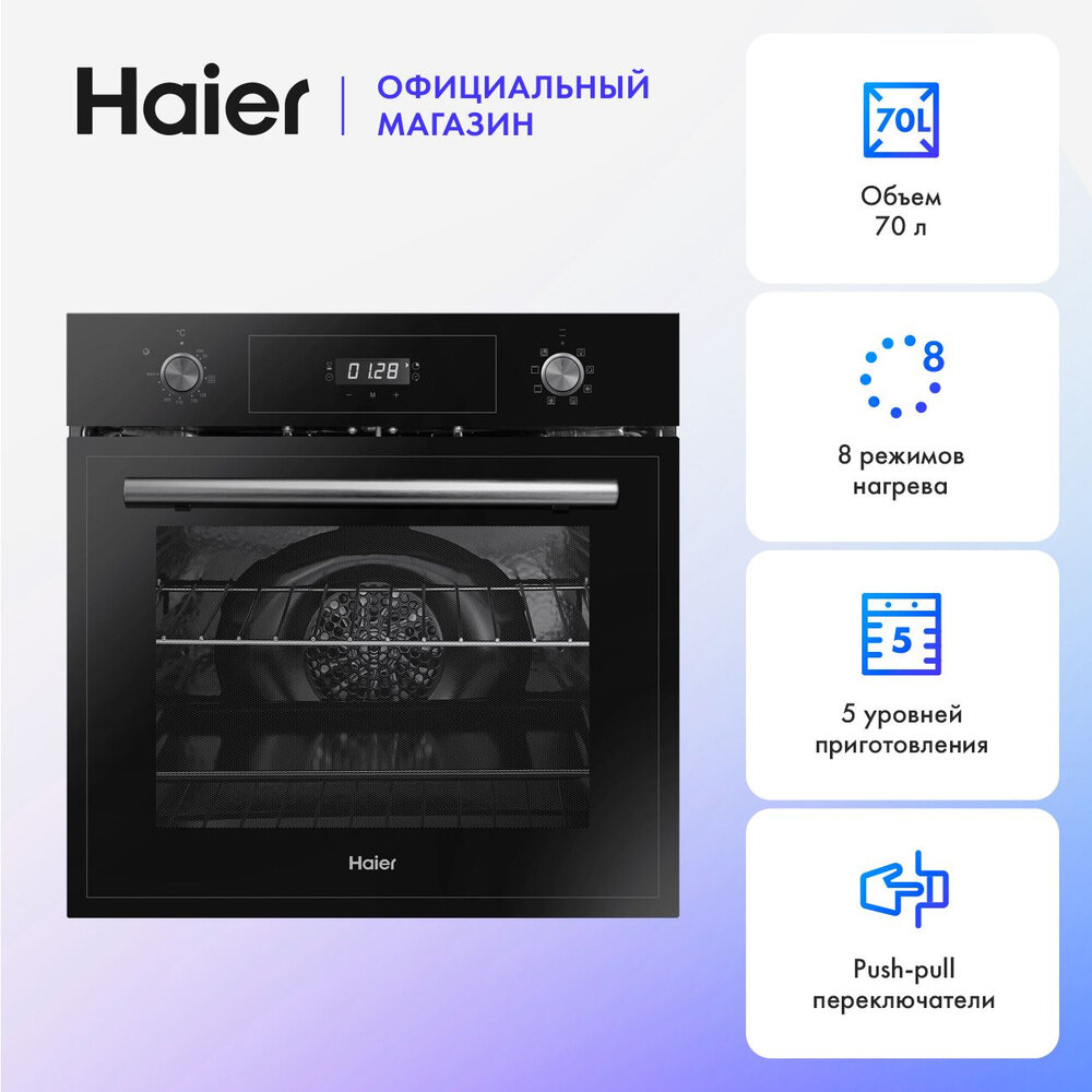 Электрический духовой шкаф Haier HOD-PM08TGB, каталитическая очистка, гриль, конвекция, черный, 70 л: сравнение цен, характеристики, фото, актуальное наличие и цены.