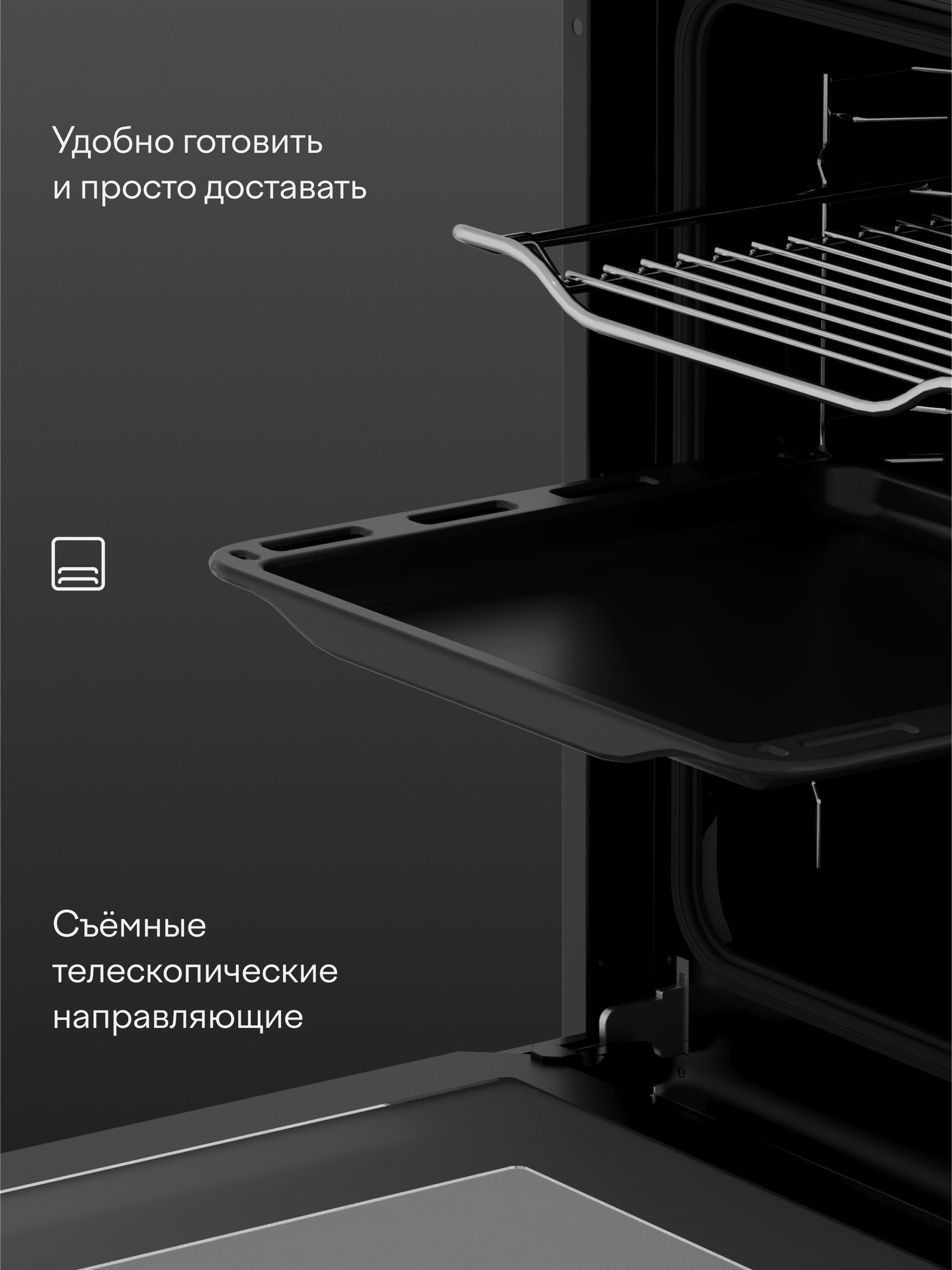 | Дополнительная информация | 2 уровня телескопических направляющих, полностью сенсорное управление, решетчатые направляющие, галогеновая лампочка, корпус духовки для паровой очистки, 3D система каталитической очистки; духовой шкаф поддерживает паровую очистку; 11 режимов; дополнительные режимы: двойной гриль и обдув, верхний и нижний нагрев с обдувом; Smart Menu из 8 автоматических программ - режим сохранения тепла (расстойка теста), режим подогрева, режим приготовления тостов, режим выпекания пиццы, режим приготовления куриных ножек, режим приготовления хлеба, режим приготовления пирога, режим приготовления говядины |