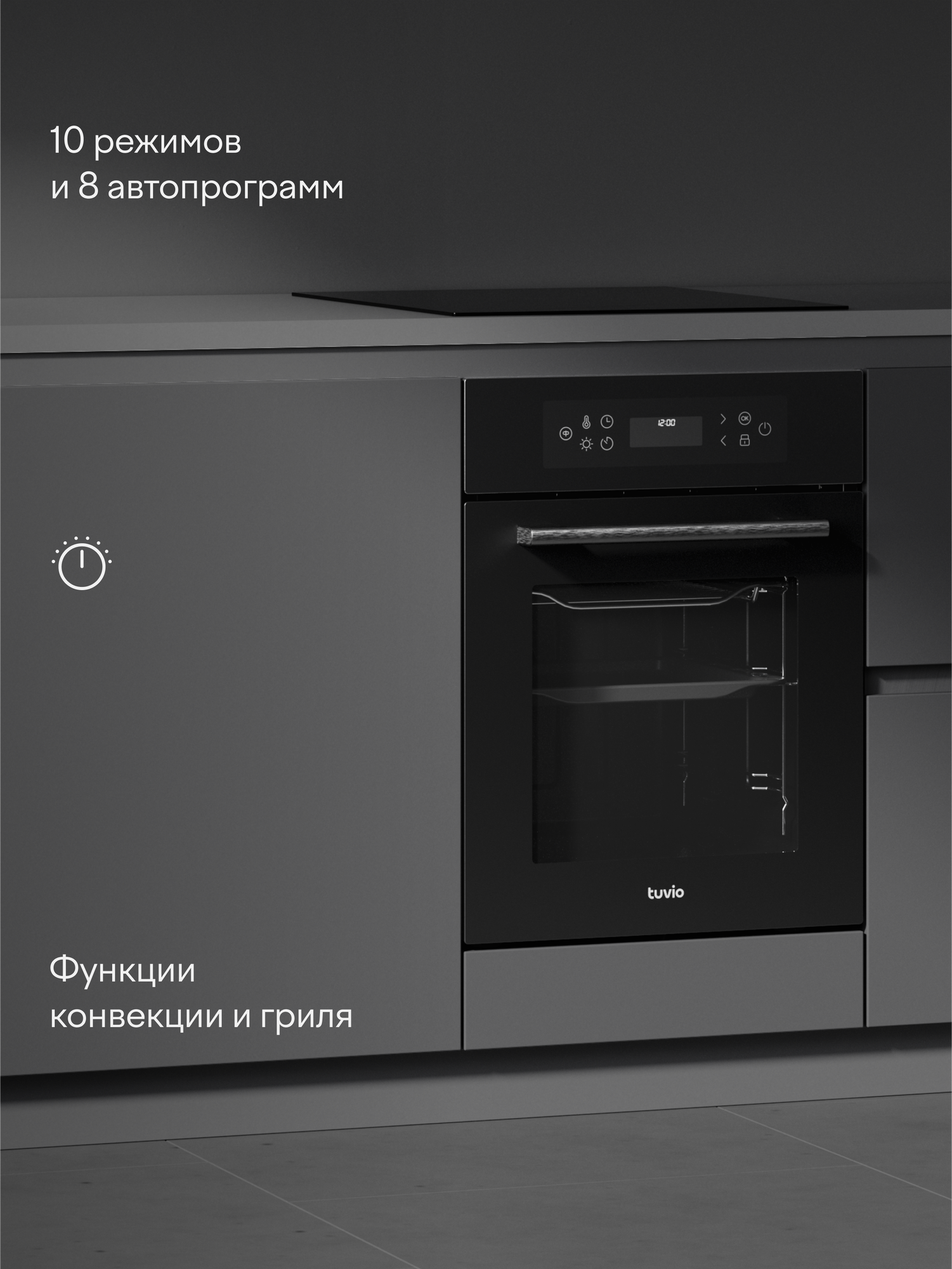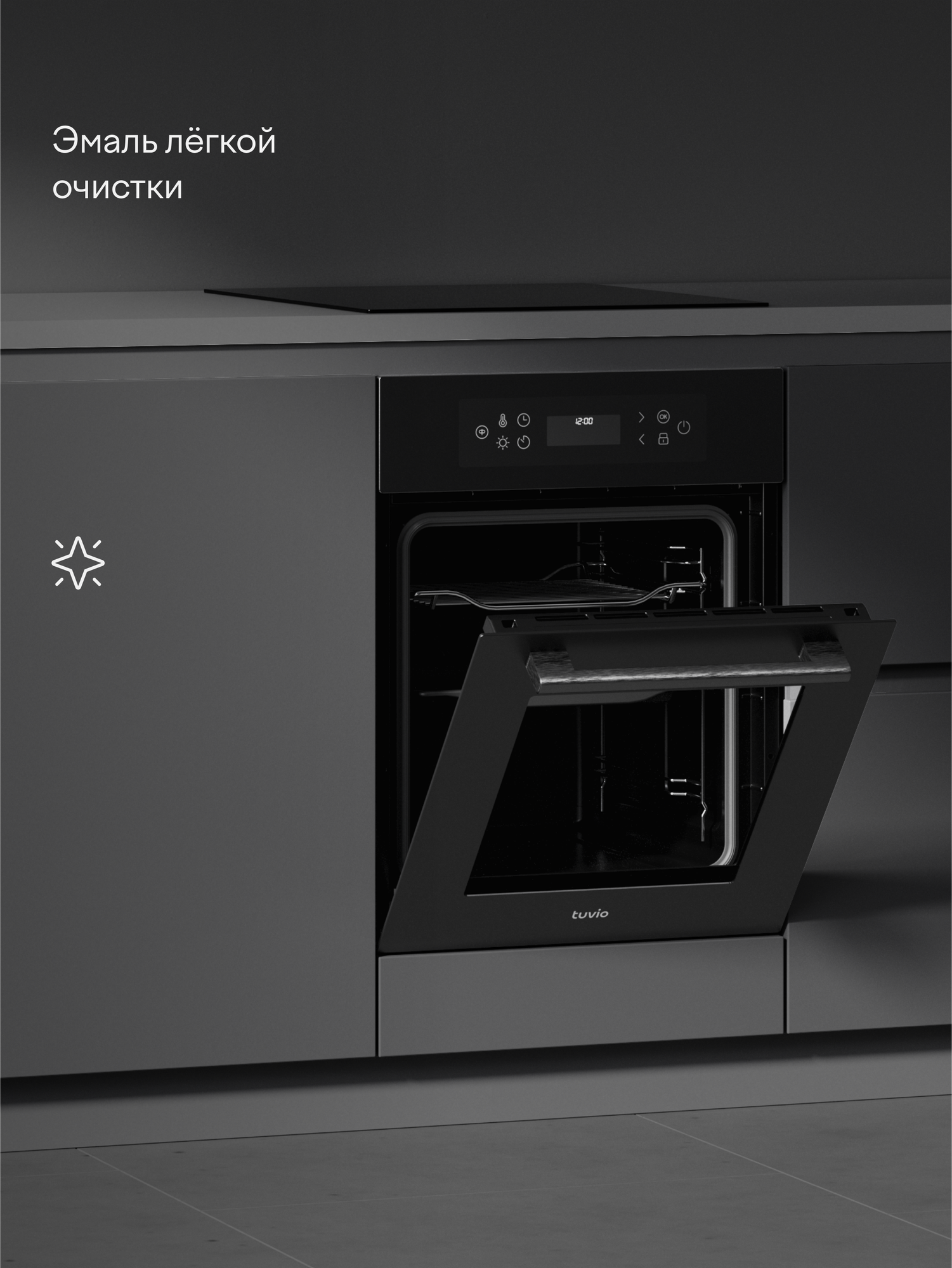 Купить Духовой шкаф Tuvio NN86STBGB1, 50л, 45 см, конвекция, гриль, 10 режимов, Easy Clean, 3 стекла, 5 лет гарантии, черный с доставкой по всей России.