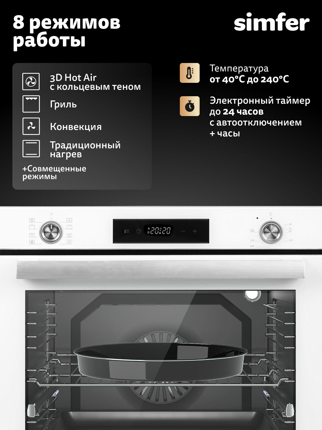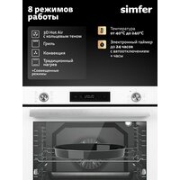 Купить Духовой шкаф электрический встраиваемый Simfer 60см, 80л, 8 режимов, гриль, конвекция, 3 стекла, таймер, 5 ЛЕТ гарантия с доставкой по всей России.