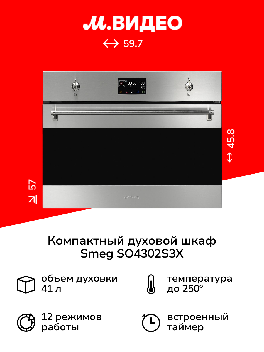 Компактный духовой шкаф Премиум Smeg SO4302S3X: сравнение цен, характеристики, фото, актуальное наличие и цены.
