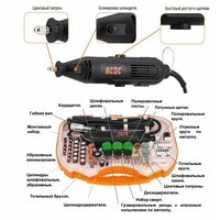 | Комплектация | Рубанок электрический 1 шт ,гибкий вал 1 шт, ключ 1 шт , набор аксессуаров 90 шт ,прозрачный кейс 1 шт |