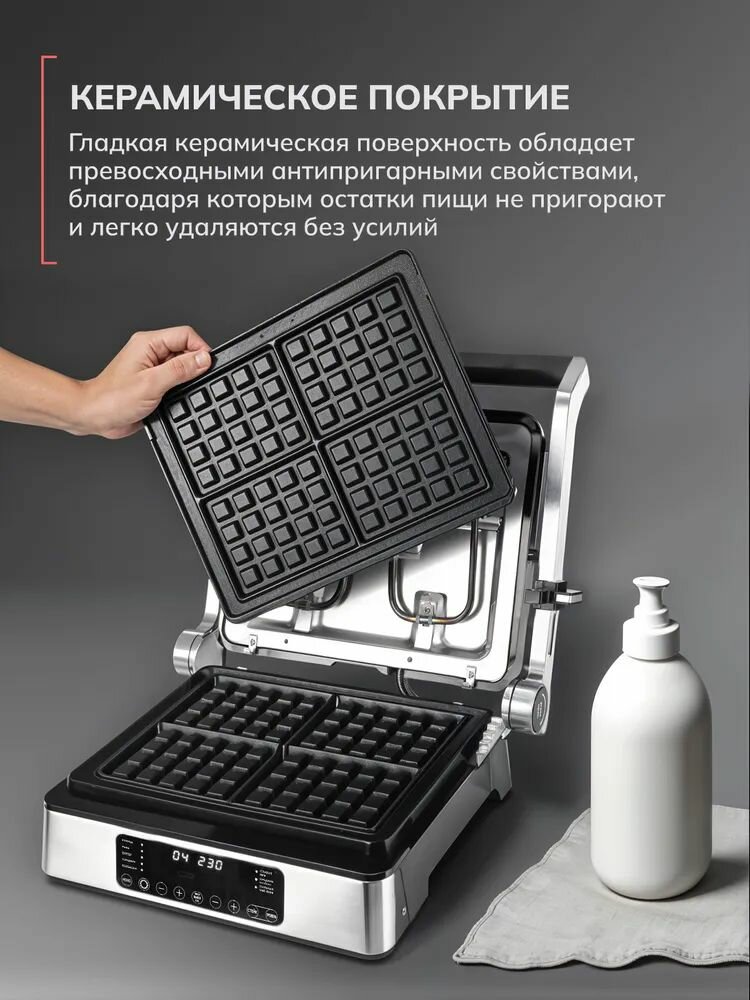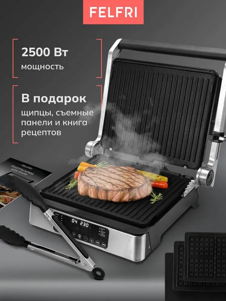 Электрический гриль для дома с несколькими режимами и программами готовки и регулировкой температуры для стейков, бургеров, вафель, овощей со съемными панелями и антипригарным покрытием: сравнение цен, характеристики, фото, актуальное наличие и цены.