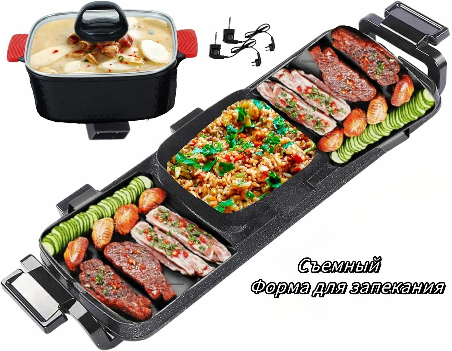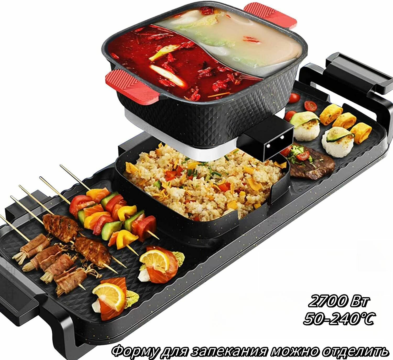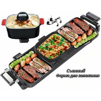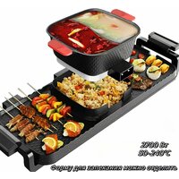 Купить Электрический гриль, электрическая сковорода, кастрюля двойного назначения, 3 в 1, многофункциональная бытовая, черная, с антипригарным покрытием и бездымная, высокая мощность 2700 Вт с доставкой по всей России.