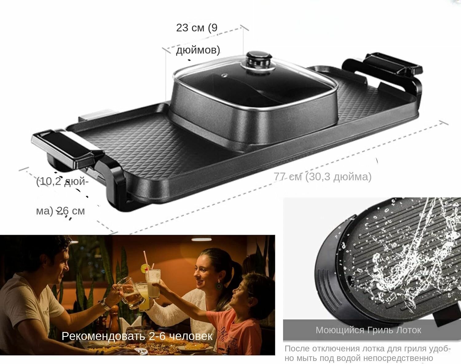 Электрический гриль, электрическая сковорода, кастрюля двойного назначения, 3 в 1, многофункциональная бытовая, черная, с антипригарным покрытием и бездымная, высокая мощность 2700 Вт: сравнение цен, характеристики, фото, актуальное наличие и цены.