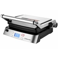 Мощность 2000 Вт Съёмные моющиеся пластины с антипригарным покрытием Размер пластин 2923 см Максимальная температура нагрева 230° Рифлёные панели для равномерной прожарки Раздельная, плавная регулировка температуры верхней и нижней панелей Регулировка расстояния между пластинами по высоте продукта Корпус из высокопрочного пластика, декорирован нержавеющей сталью Открытие крышки на 180° Нагревательные элементы в верхней и нижней части LCD-дисплей Автоотключение через 60 минут Поддон для сбора жира Защита от перегрева Электропитание 220-240 В, ~50/60 Гц