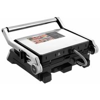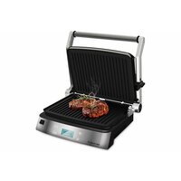 съёмные моющиеся пластины, размер пластин: 29х23 см, максимальная температура 230°, рифленые панели для равномерной прожарки, нагревательные элементы в верхней и нижней части, раздельная регулировка температуры верхней и нижней панелей, регулировка расстояния между пластинами по высоте продукта, LCD-дисплей, автоотключение через 60 минут, защита от перегрева
