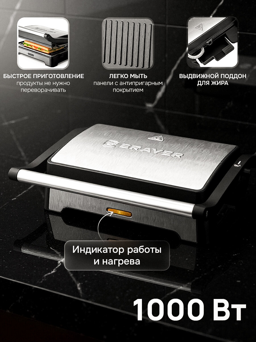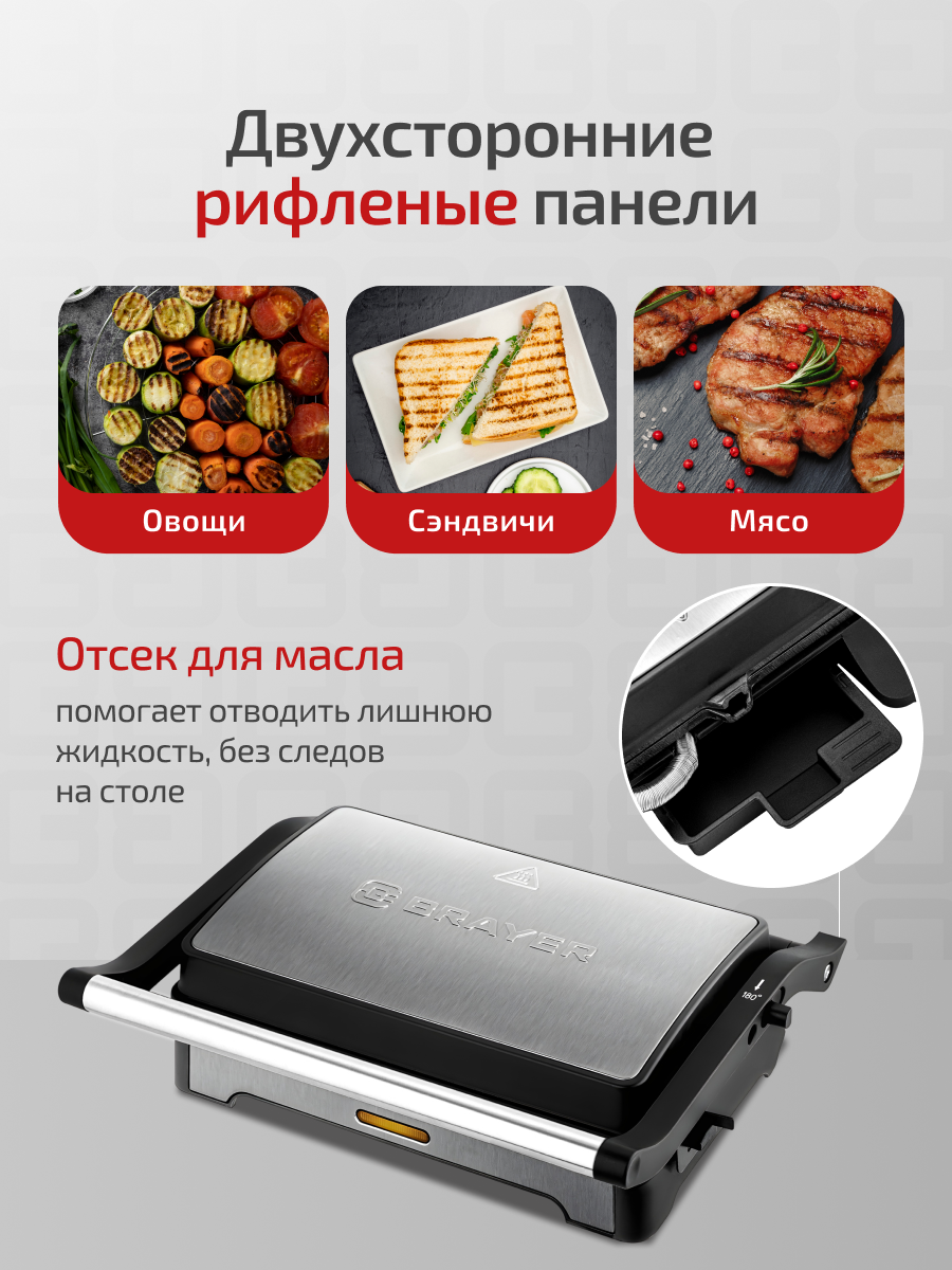 Электрический гриль-пресс BRAYER BR2011, 1000Вт, антипригарное покрытие пластин, индикатор работы и нагрева, до 195°: сравнение цен, характеристики, фото, актуальное наличие и цены.