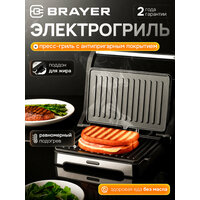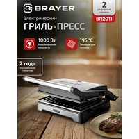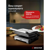 Купить Электрический гриль-пресс BRAYER BR2011, 1000Вт, антипригарное покрытие пластин, индикатор работы и нагрева, до 195° с доставкой по всей России.