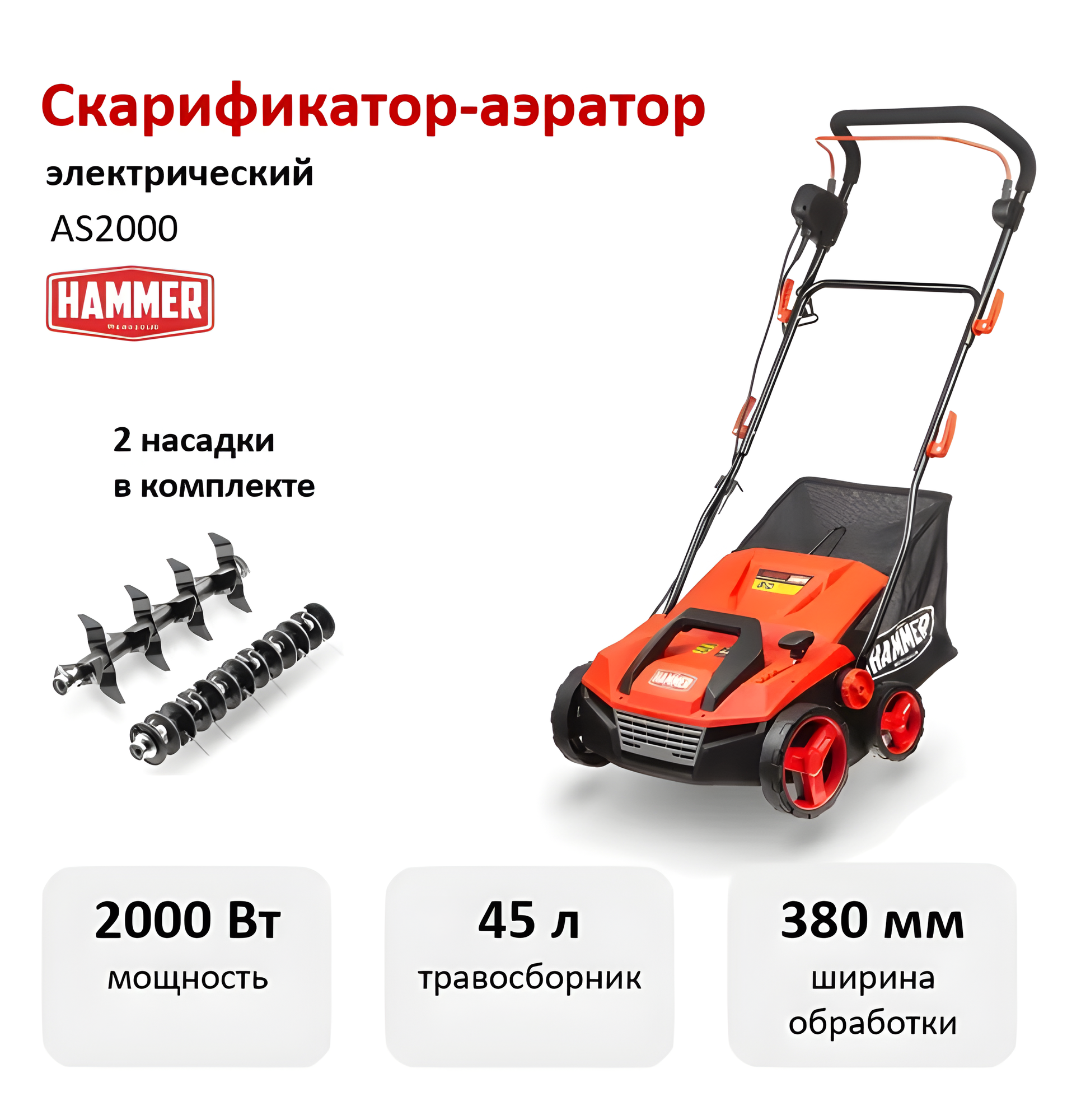 Купить Скарификатор-аэратор электрический Hammer AS2000 для газона, 2000 Вт с доставкой по всей России. Скарификатор-аэратор электрический Hammer AS2000 для газона, 2000 Вт: сравнение цен, характеристики, фото, актуальное наличие и цены.
