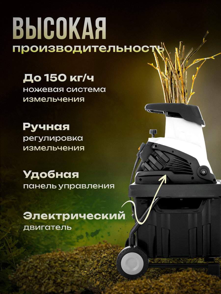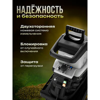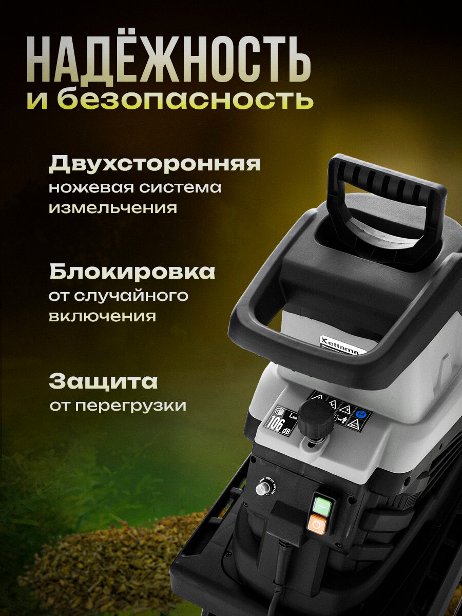 Электрический двигатель мощностью 2500 вт разгоняет ножи до 4500 об/мин, позволяя измельчить садовые отходы до минимальных размеров. Садовые измельчители Kettama MPS02D оснащены мусоросборниками на 50 литров (в моделях MPS01D и MPS02D) и 60 литров (в модели MPS06), которые легко снимаются для очистки. Стальные ножи с двусторонней заточкой способны перерабатывать до 150 кг травы и веток в час. Защита двигателя от перегрузки и блокировка включения при открытой крышке сделают эксплуатацию каждой модели электрического измельчителя веток безопасной и комфортной.
