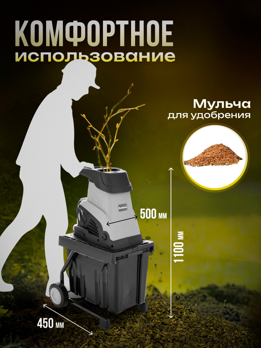 Электрические измельчители Kettama подойдут для переработки веток, листвы, сухой скошенной растительности диаметром до 40-45 мм. Незаменимый помощник в саду или на даче для поддержания порядка на участке.
