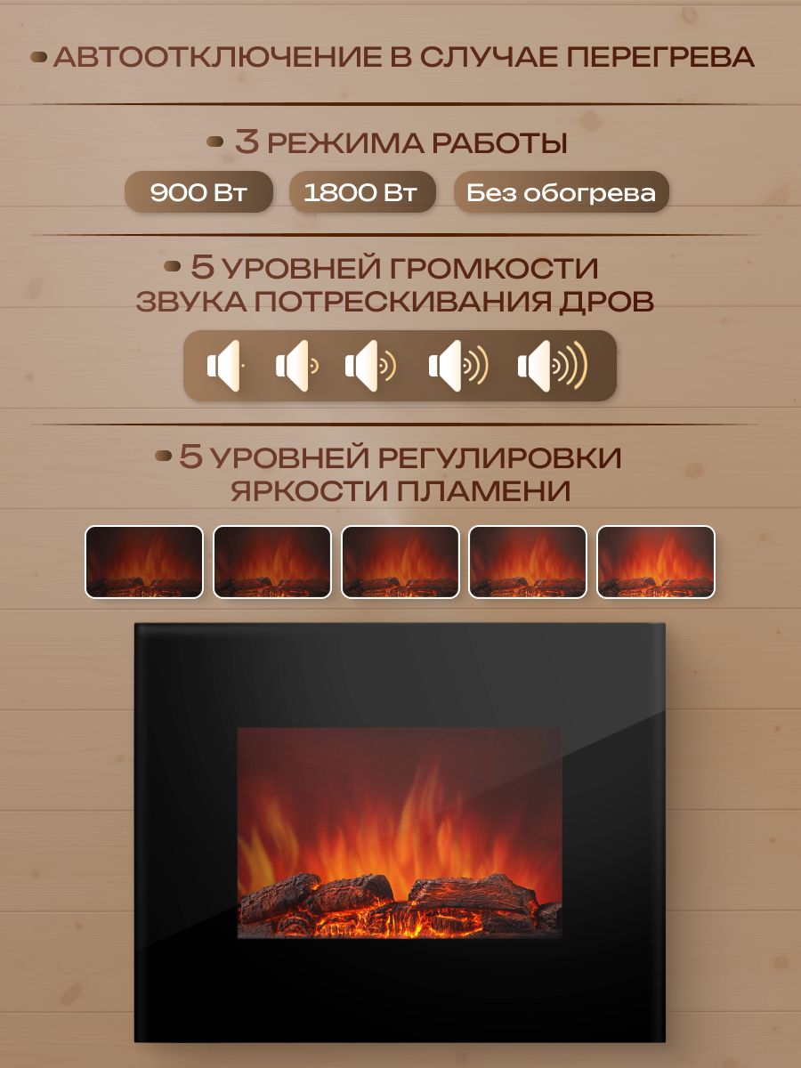 дистанционное управление, защита от перегрева, эффект живого огня