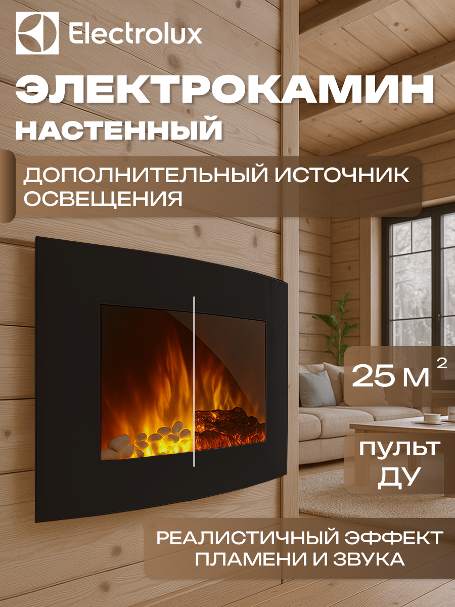 Купить Электрический камин Electrolux EFP/W-1200URLS, мощность 2 кВт, цвет черный с доставкой по всей России.