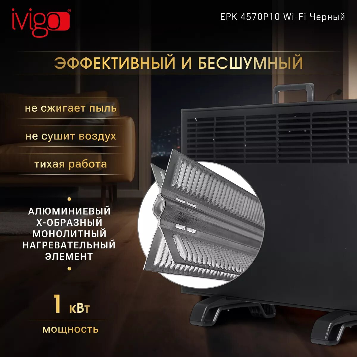Купить Электрический конвектор iVigo EPK4570P10 Черный с управлением по WI-FI с доставкой по всей России.