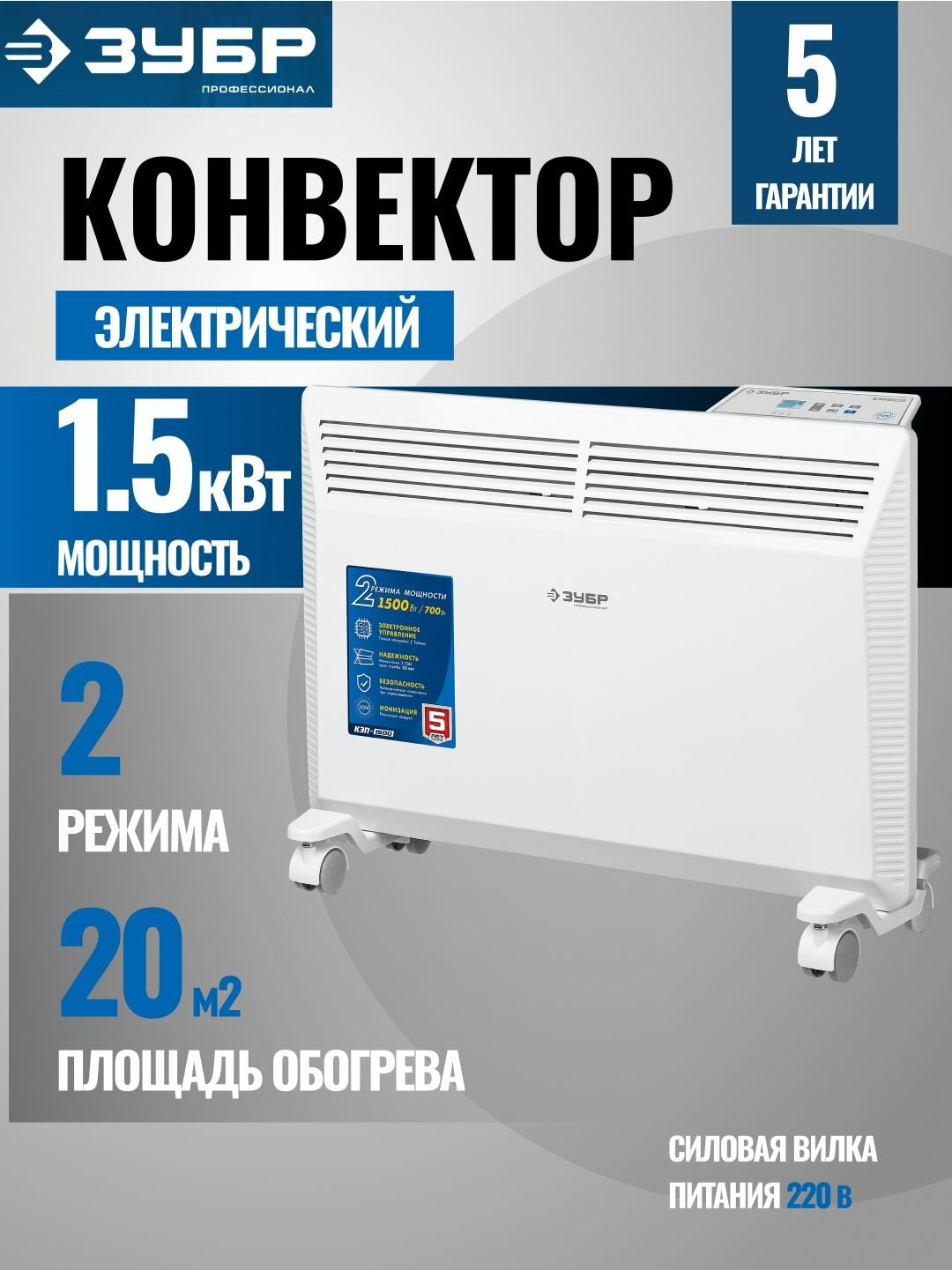 Купить Электрический конвектор Профессионал, ЗУБР, 1.5 кВт, Профессионал с доставкой по всей России. Электрический конвектор Профессионал, ЗУБР, 1.5 кВт, Профессионал: сравнение цен, характеристики, фото, актуальное наличие и цены.