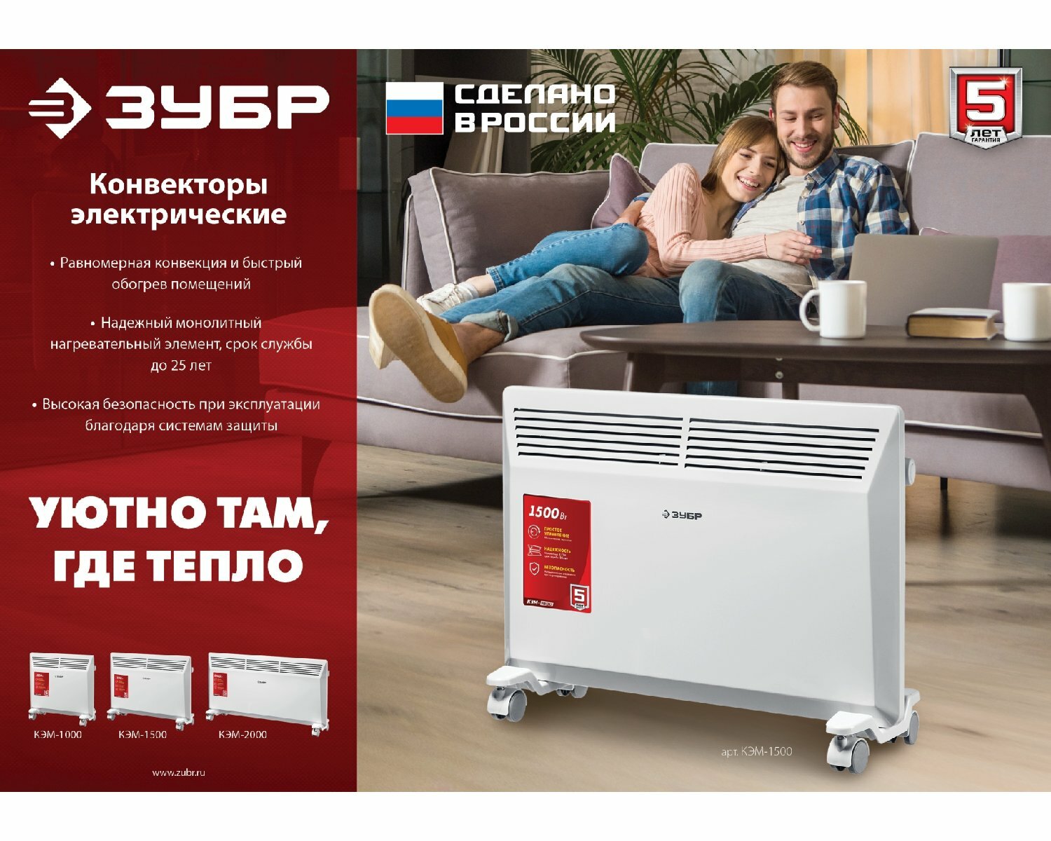 Электрический конвектор ЗУБР 1500 Вт механический термостат защита от опрокидывания настенное и напольное крепление для помещений 20 м²: сравнение цен, характеристики, фото, актуальное наличие и цены.