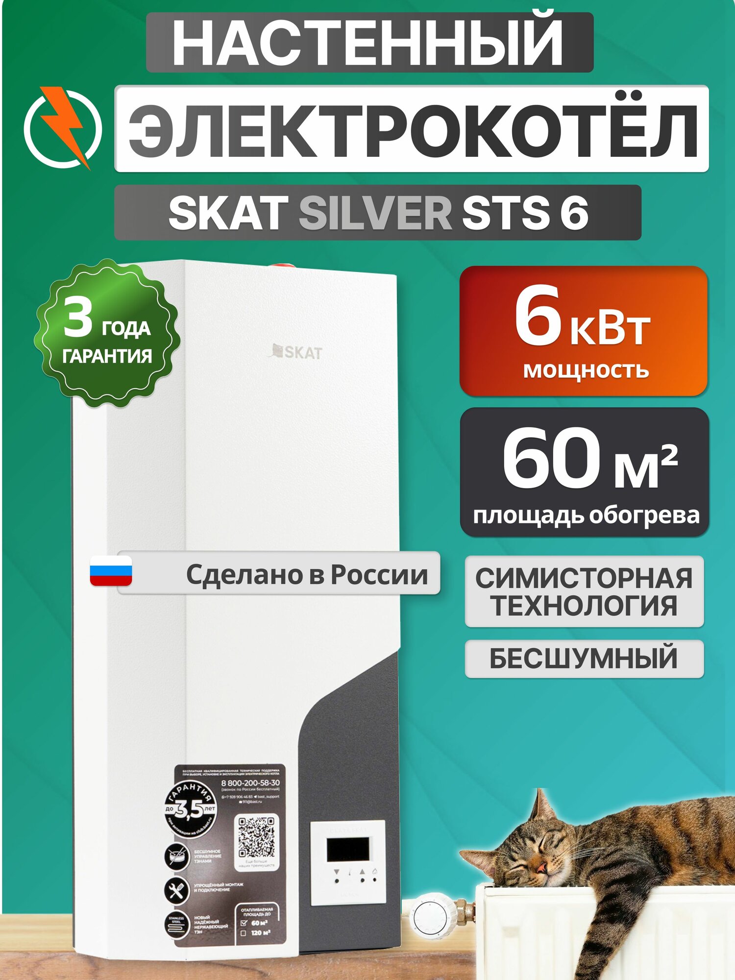 Электрический малошумный котел Skat Silver STS-6 кВт с симисторным управлением: сравнение цен, характеристики, фото, актуальное наличие и цены.