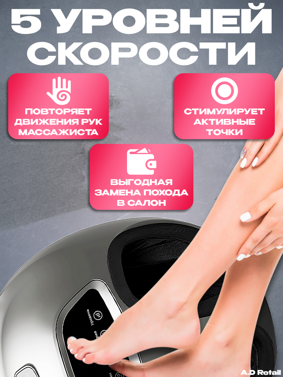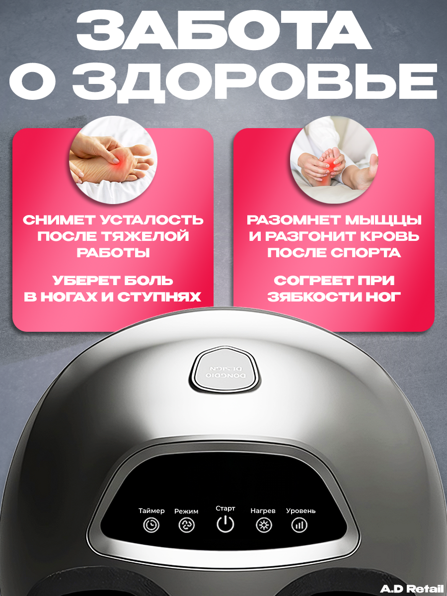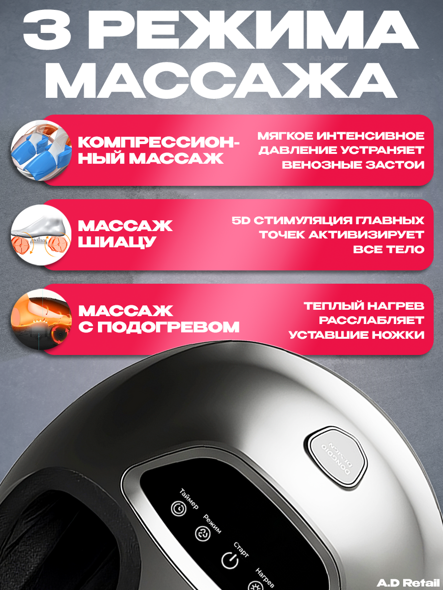 | Зона массажа | голени, ноги, пальцы ног, пятки |