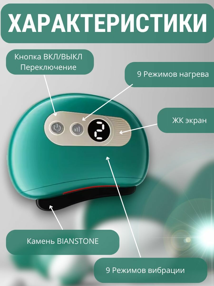 Купить Электрический массажер Гуаша для лица и тела / Скребковый инструмент для ухода за кожей с подогревом и вибрацией Зеленый с доставкой по всей России.
