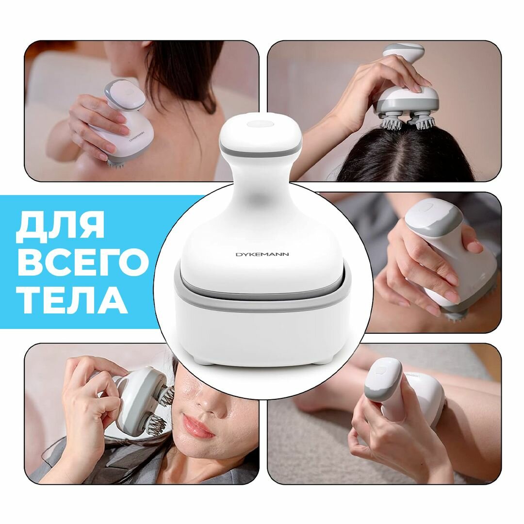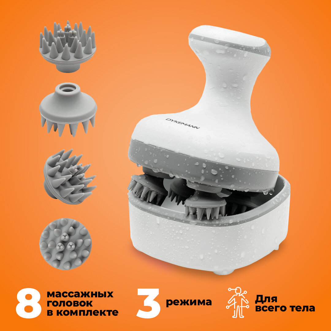 Позвольте себе профессиональный массаж головы вместе с массажером DYKEMANN Entspannung RS-3. Благодаря массажеру вы можете моментально расслабиться, снять усталость и восстановить самочувствие. Регулярное использование массажера для головы помогает восстановить нормальную деятельность сальных и потовых желез, что приводит к улучшению состояния кожи и волос. Акупунктурное воздействие на активные точки улучшает работу энергетических каналов, стимулирует деятельность органов центральной нервной системы, повышает иммунитет. Благодаря массажному эффекту можно справиться с проблемой выпадения волос, усилить работу луковиц, получить сильные и здоровые волосы. Массажер для головы DYKEMANN Entspannung RS-3 оснащен четырьмя головками, которые вращаются на 360°, создавая трехмерное воздействие на кожу головы. Массажер можно использовать даже в душе, благодаря его водостойкому корпусу. Нанесите на волосы шампунь или бальзам и проведите массаж – это существенно повысит эффективность косметики. Благодаря встроенному аккумулятору прибор работает автономно. Рабочая поверхность головок - силикон, который является гипоаллергенным материалом и препятствует развитию вредоносных микроорганизмов на головках. В приборе предусмотрено 3 режима массажа для максимального комфорта процедуры. Управление прибором осуществляется одной кнопкой на корпусе. Функция авто выключения активируется через 10 минут после начала сеанса. В комплекте предусмотрены 4 жесткие и 4 мягкие сменные головки. Массажер для головы DYKEMANN Entspannung RS-3 также можно использовать для массажа лица и тела.