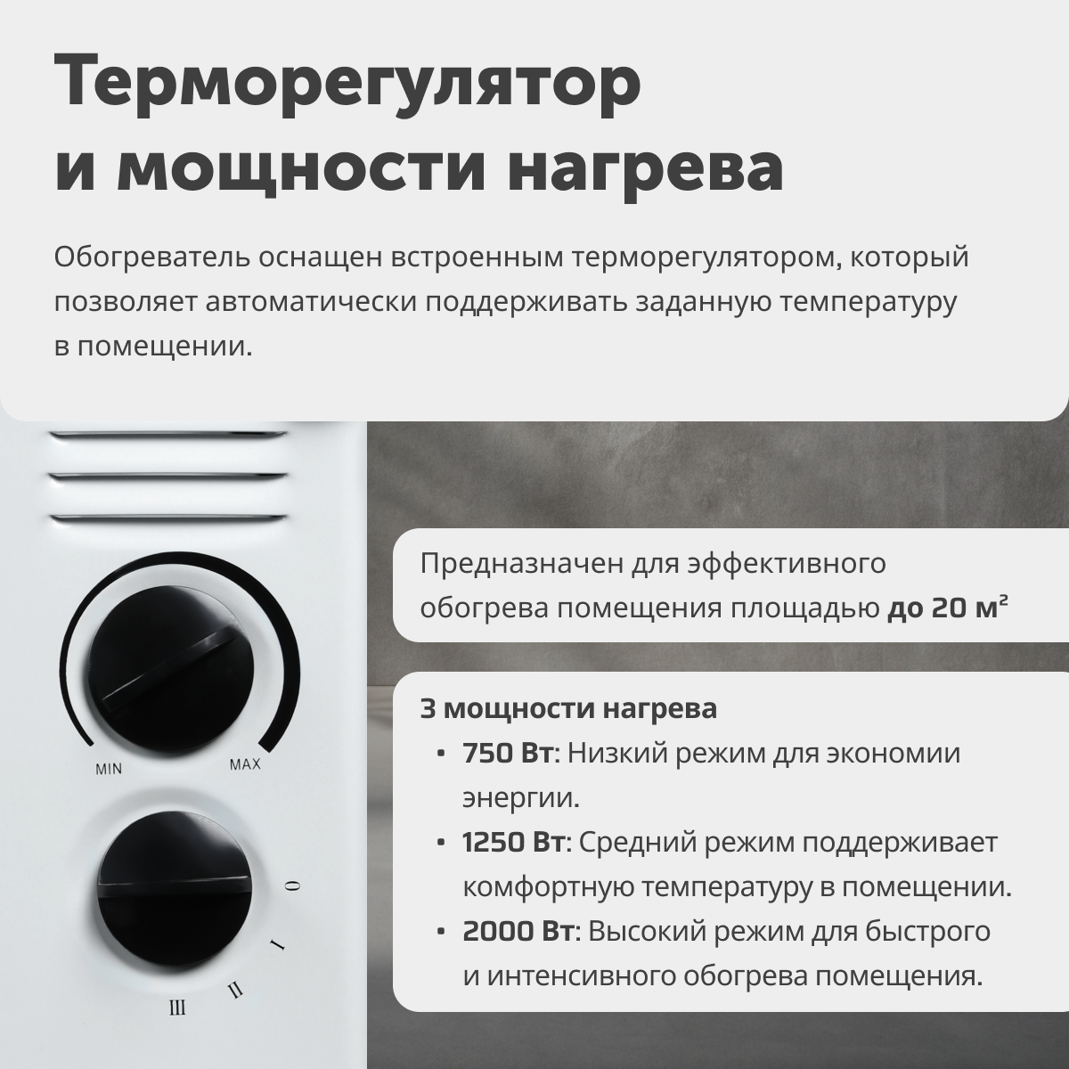 Купить Электрический напольный обогреватель, 3 режима работы, мощность 2000 Вт, белый с доставкой по всей России.