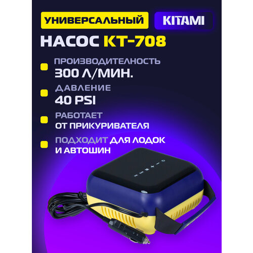 KITAMI KT-708 — отличный выбор для автомобилистов, путешественников, рыбаков и всех, кто ценит мобильность и надёжность. Насос подходит для накачивания автошин, шин, лодок, бассейнов, сапбордов, палаток, мячей и матрасов.