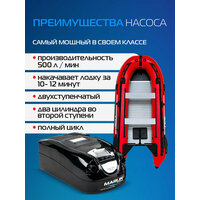Время накачивания лодки средних размеров (3,3 ÷ 3,6 м) составляет 10 ÷ 12 минут. Электронасос Marlin GP-80 BD работает, а вы готовитесь к рыбалке или складываете снасти!